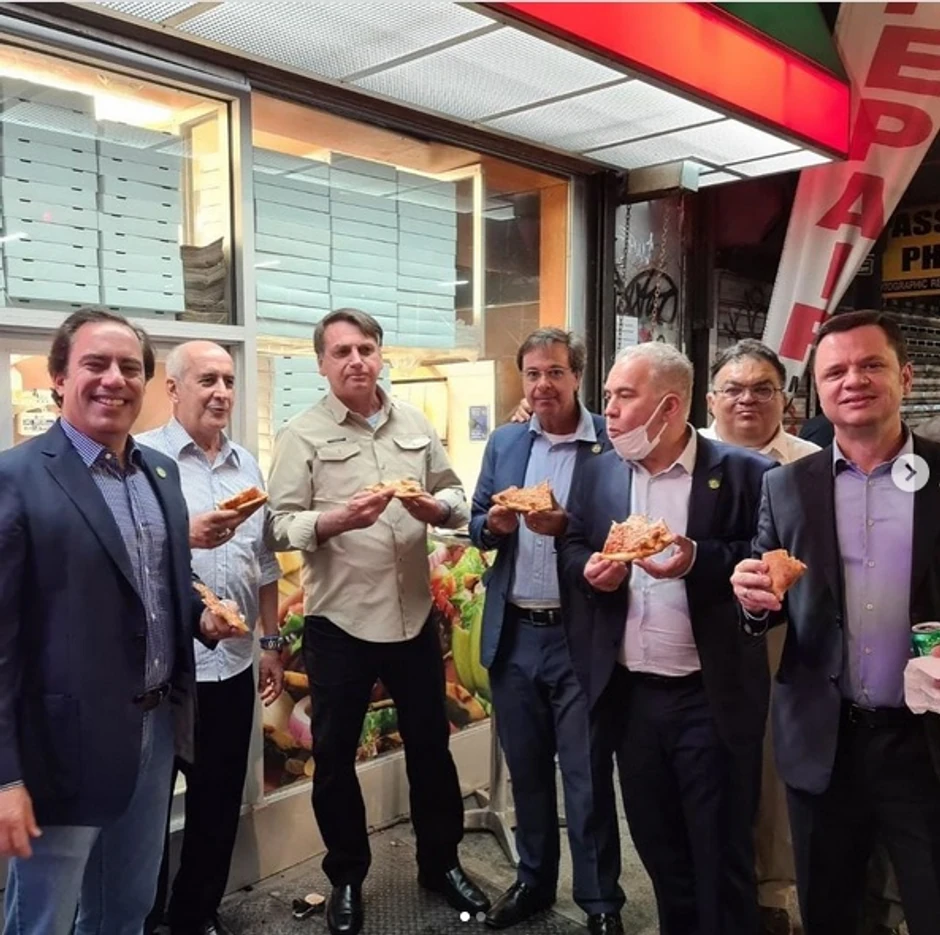 Dva ministra iz njegovog kabineta, koja su deo brazilske delegacije, objavila su u nedelju uveče fotografiju Bolsonara koji sa pomoćnicima jede kriške pice na njujorškom šetalištu. Bolsonarove pristalice pohvalile su ovaj potez kao neobaveznu "jednostavnost" njihovog lidera, koji se odlučio da večera na ulici u blizini hotela na Menhetnu u kojem odseda.