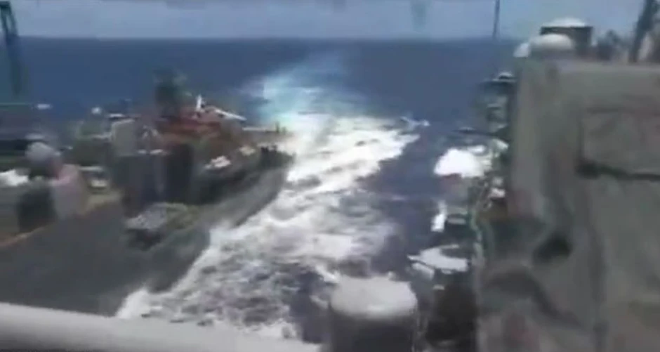 Bizarna scena je zabeležena dok je ruski brod prolazio svega nekoliko metara od američkog ratnog broda.