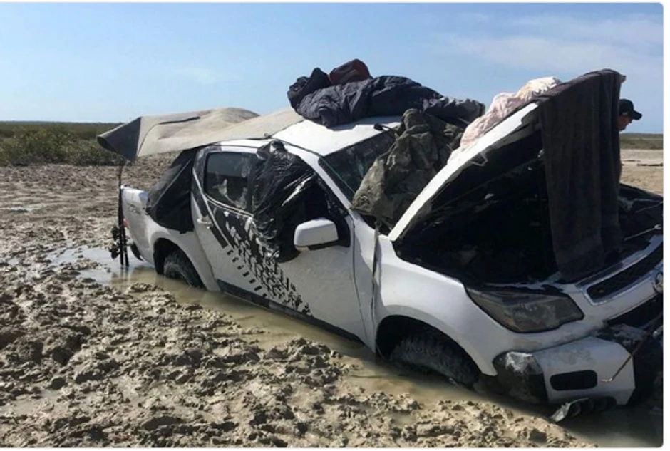 Stajali su na krovu vozila i tako prevrodili oko šest plima i oseka. U Kimberliju ima mnogo krokodila i zmija - rekao je Mark Balfour iz lokalne policije za "ABC njuz".