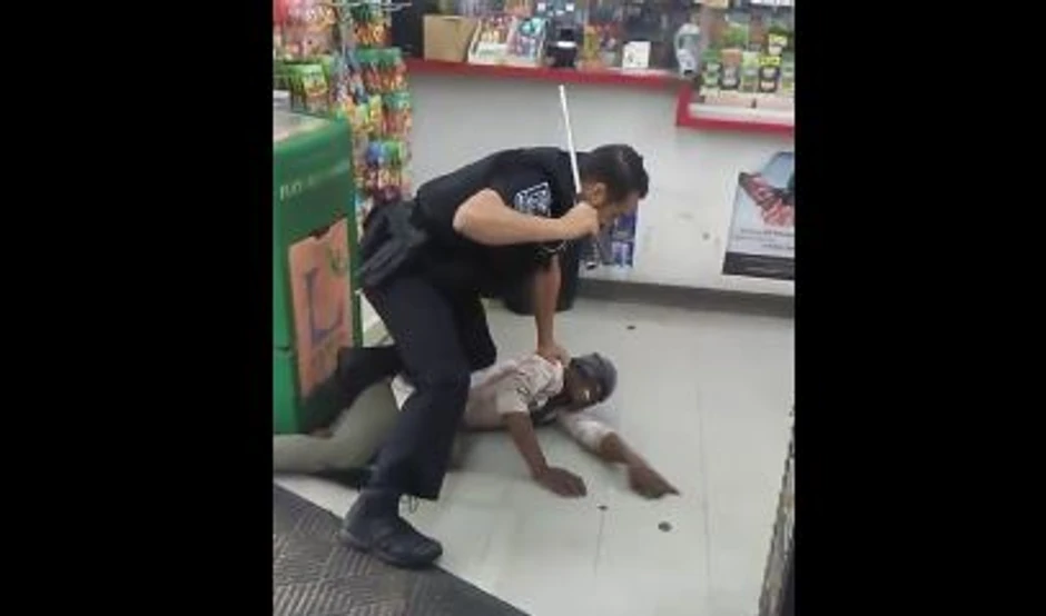 Kejt Mekarki je prosila ispred pumpe zbog čega su radnici pozvali policiju, ali niko nije očekivao ovako brutalan ishod. Na kraju snimka se vidi kako policajac ženi stavlja lisice, dok ona zapomaže: "Šta sam uradila?!"