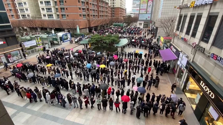 U Južnoj Koreji, najvećem žarištu korona virusa izvan Kine sa 2022 slučaja, ljudi čekaju u kilometarskim redovima kako bi došlo do zaštitnih maski za lice.