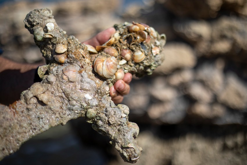 Iako je mač optočen morskim organizmima, oštrica, drška i sečivo dugačko metar, bili su dovoljno vidljivi, nakon što je podvodno strujanje pomerilo pesak koji ga je prikrivao, preneo je Rojters.