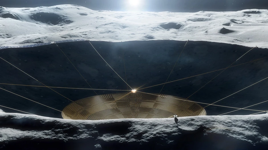 Planirani teleskop sastojaće se od ogromne žičane mreže okačene kablovima unutar kratera na drugoj strani Meseca