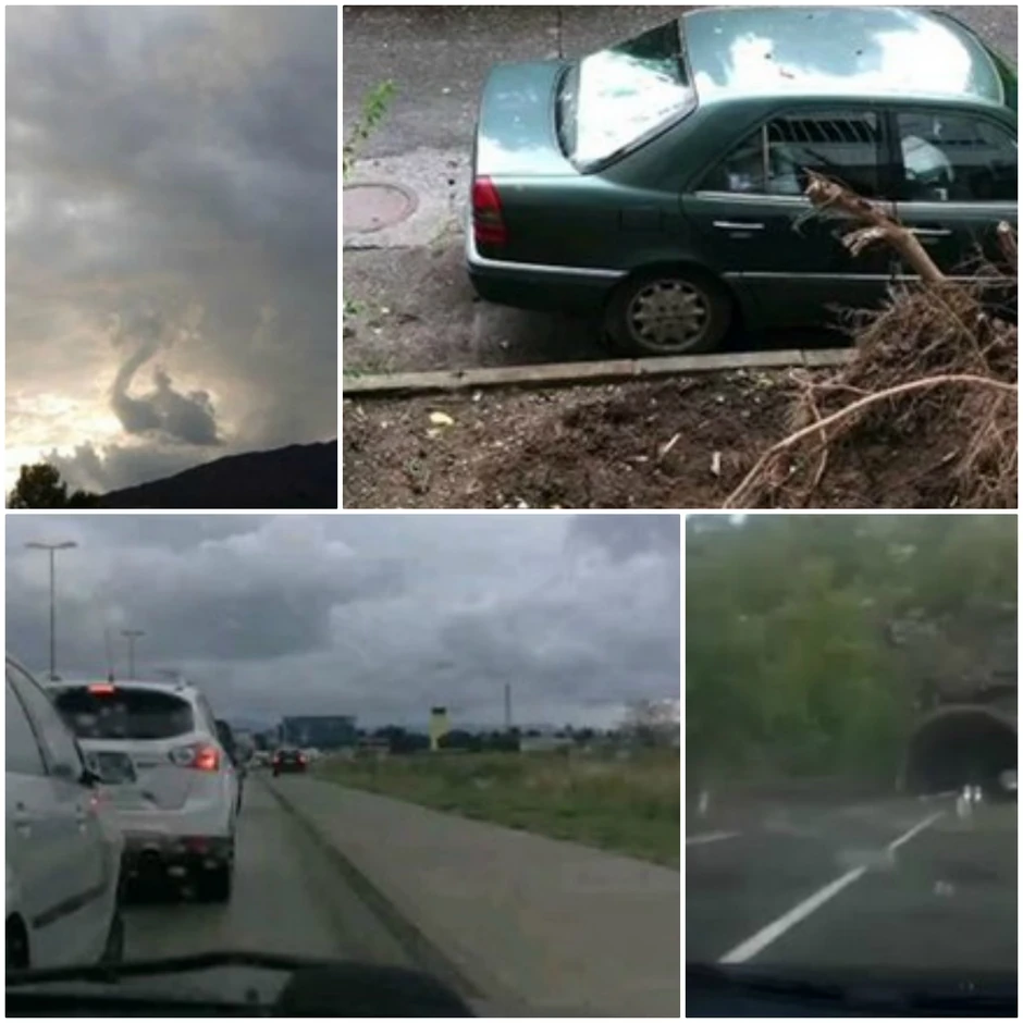 Kako se vidi na fotografama objavljenim na nalogu Podgorički vremeplov na Instagramu - oborena su stabla, a uništeno je više automobila.