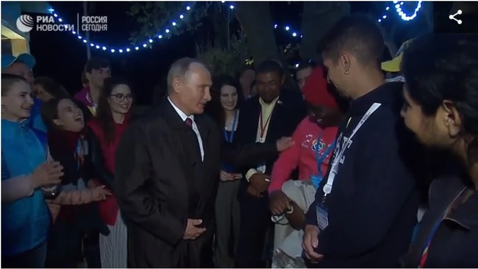 Predsednik Rusije Vladimir Putin susreo se sa učesnicima 19. Svetskog festivala omladine i studenata u Sočiju. Tokom razgovora student iz Nigerije priznao je Putinu da ne može da veruje da stoji ispred njega, predsednika Ruske Federacije, na šta mu je Putin u šali predložio: „Uštini me“.
