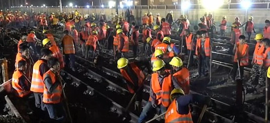 Kineski radnici još jednom su pokazali koliko su efikasni. Naime, oko 1500 radnika provelo je samo devet sati popločavajući prugu za novu stanicu u Fujian provinciji u južnom delu Kine.