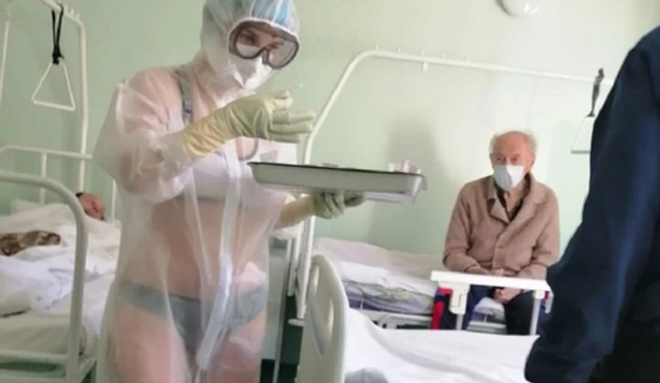 Nakon što je preko noći postala internet senzacija, medicinska sestra iz Tule, u centralnoj Rusiji, koja se pojavila u providnom zaštitnom odelu ispod koga se video veš, izgleda uopšte nije bila svesna svog izgleda.