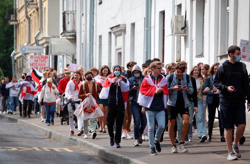 Slike predstavljaju snažan kontrast u odnosu na ono što se prethodno odigralo: više od 100.000 ljudi, neki mediji tvrde da ih je čak bilo 150.000, mirno je marširalo Minskom, tapšalo, udaralo u bubnjeve i uzvikivalo: „Živela Belorusija“, „Lukašenko, odlazi“ i „Štrajk!“. To je bio najveći protest u poslednjih mesec dana.