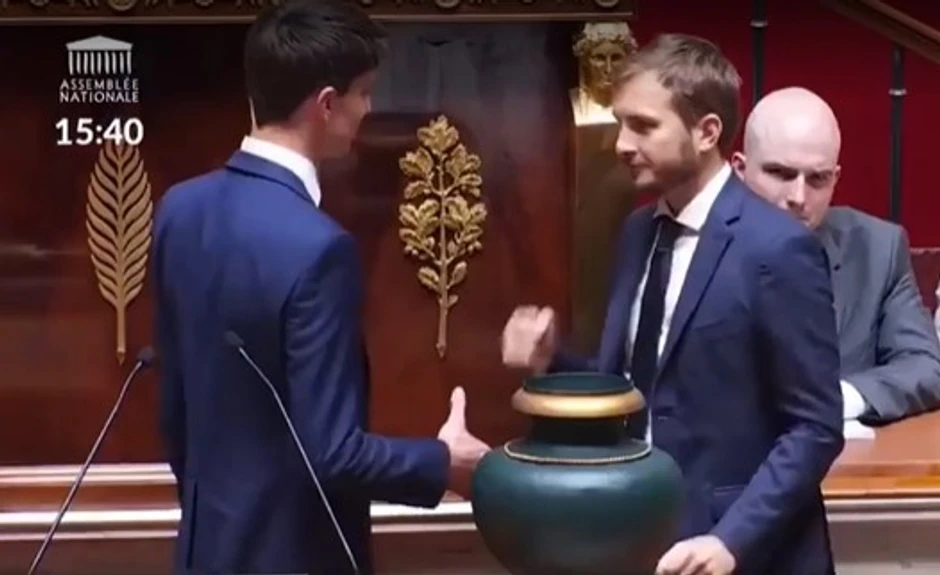 Naime, novoimenovani poslanik Flavijen Terme (22) iz stranke Marin Le Pen stajao je pored kutije u koju se ubacuju glasovi i prema običaju je trebalo da se sa njim rukuju poslanici nakon što glasaju.