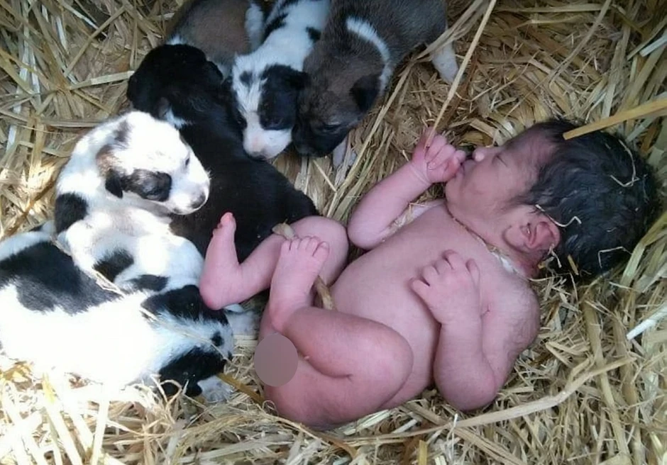 Beba, koja je pronađena u gnezdu okružena štencima, bila je nepovređena, a našli su je meštani nako što su čuli njen plač, prenosi Mirror.