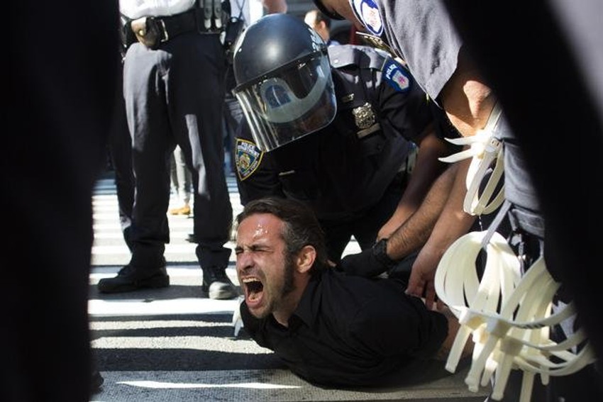 Na godišnjicu od početka masovnih protesta Pokreta "Okupirajmo Volstrit", policija je danas uhapsila više od 100 ljudi u Njujorku koji su u malim protesnim grupicama šetali po finansijskom centru Menhetna. Njujorška policija saopštila je da su uhapšena 124 demonstranta danas do podneva po lokalnom vremenu i da je policija blokirala pristup Njujorškoj berzi, da patrolira ispred velikih banaka i vladinih zgrada i da čuva visoku bronzanu skulpturu na ulazu u Volstrit.