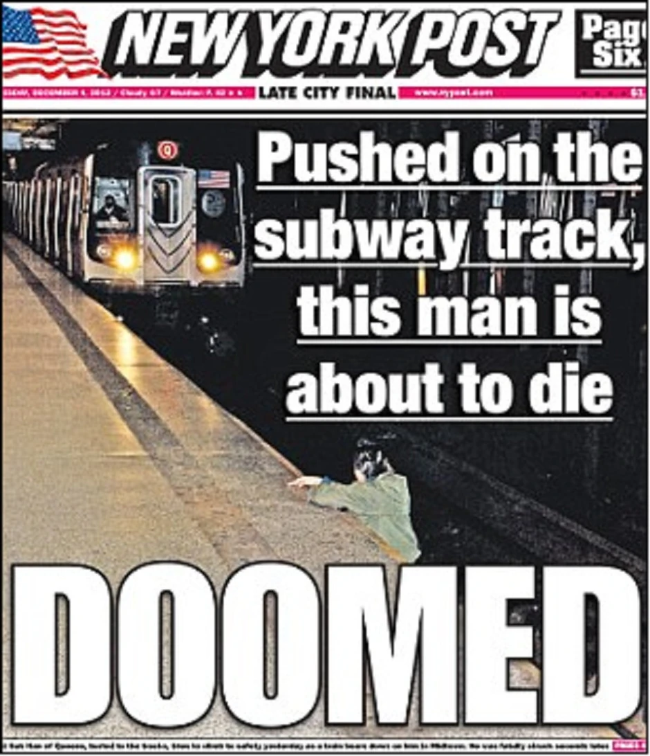 U njujorškom metrou se dogodila tragedija koja je šokirala ceo grad - pod točkovima voza poginuo je muškarac koga je na šine gurnuo mentalno poremećeni sugrađanin. Još veći šok izazvala je činjenica da niko nije pokušao da ga spase, uključujući fotografa koji ga je slikao nekoliko sekundi pre pogibije.