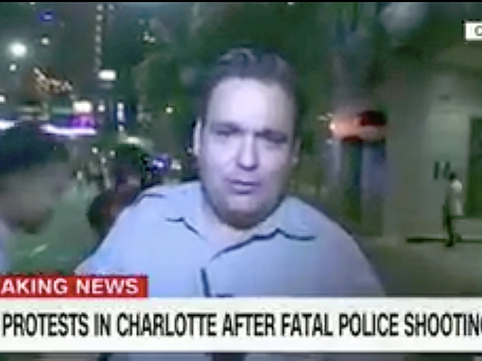 Reporter Ed Lavandera, koji je izveštavao iz Šarlota za CNN, pao je na pod usred prenosa, kada je na njega naleteo jedan demonstrant.