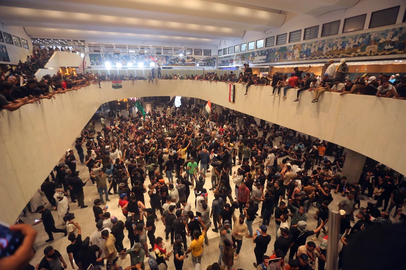 Više stotina sledbenika radikalnog šiitskog sveštenika Moktade al Sadra upalo je danas u zgradu iračkog parlamenta, što je drugi put ove sedmice, tokom protesta zbog pokušaja da se formira vlast uz koaliciju šiitskih stranaka.