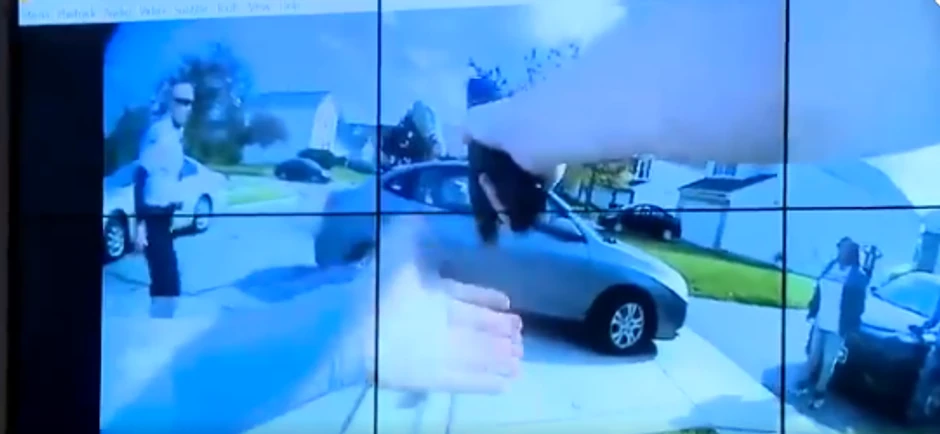 Policijski snimak pokazuje haotičnu scenu na travnjaku ispred kuće, jednu devojku kako zamahuje nožem na drugu, koja je pala na leđa, da bi zatim krenula na drugu devojku, koja se srušila na parkirana kola. Policajac je tada otvorio vatru.