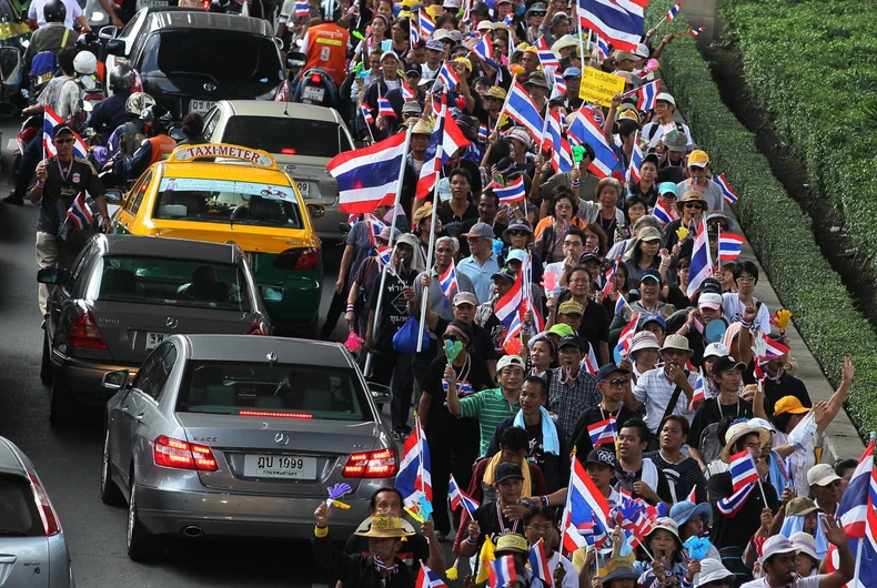 Demonstranti traže da se premijerka povuče s vlasti zbog optužbi da je njena vlada pod kontrolom svrgnutog premijera i njenog brata Taksina Šinavatre.
