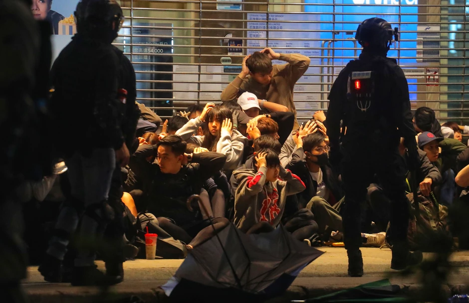 Demokratska partija saopštila je da je oko 10.000 ljudi izašlo na mirne proteste u kvartu Šeung Šju, ali da je u jednom trenutku izbilo nasilje nakon što je policija naredila demonstrantima da se raziđu.