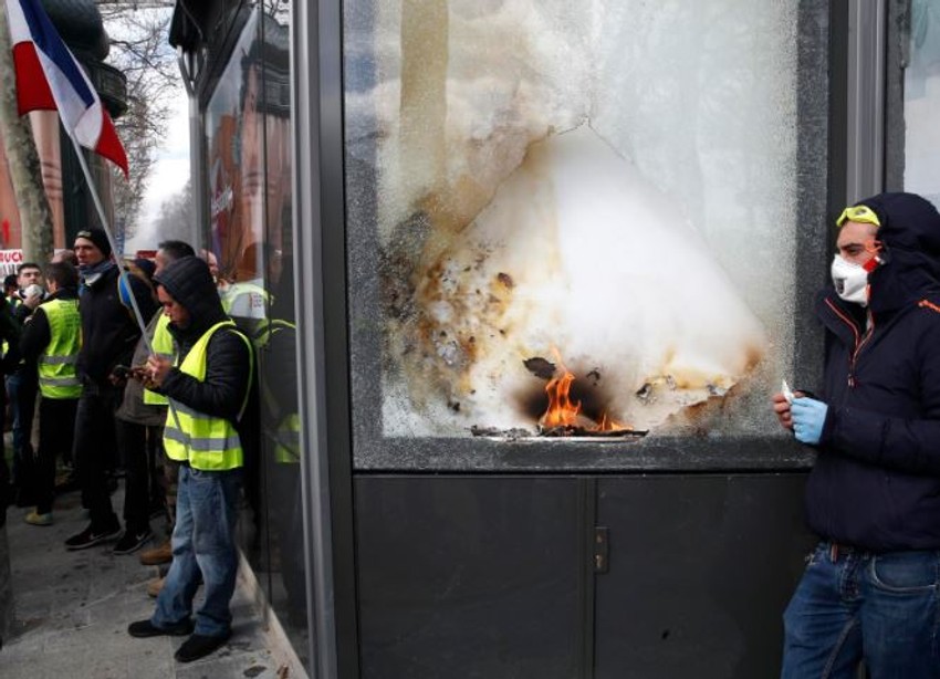 Demonstranti su palili gume od automobila i razbijali izloge, pre svega luksuznih radnji kao što su "Kenzo" i "Lakost".