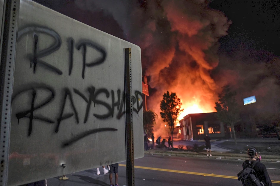 Demonstranti su u subotu zatvorili glavni auto-put u Atlanti i zapalili restoran Vendis u kojem je policija upucala crnca Rejšarda Bruksa (27) dok je pokušavao da izbegne hapšenje, a incident je zabeležen na video snimku.
