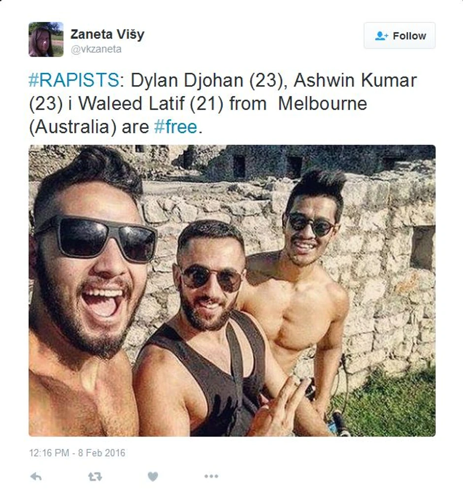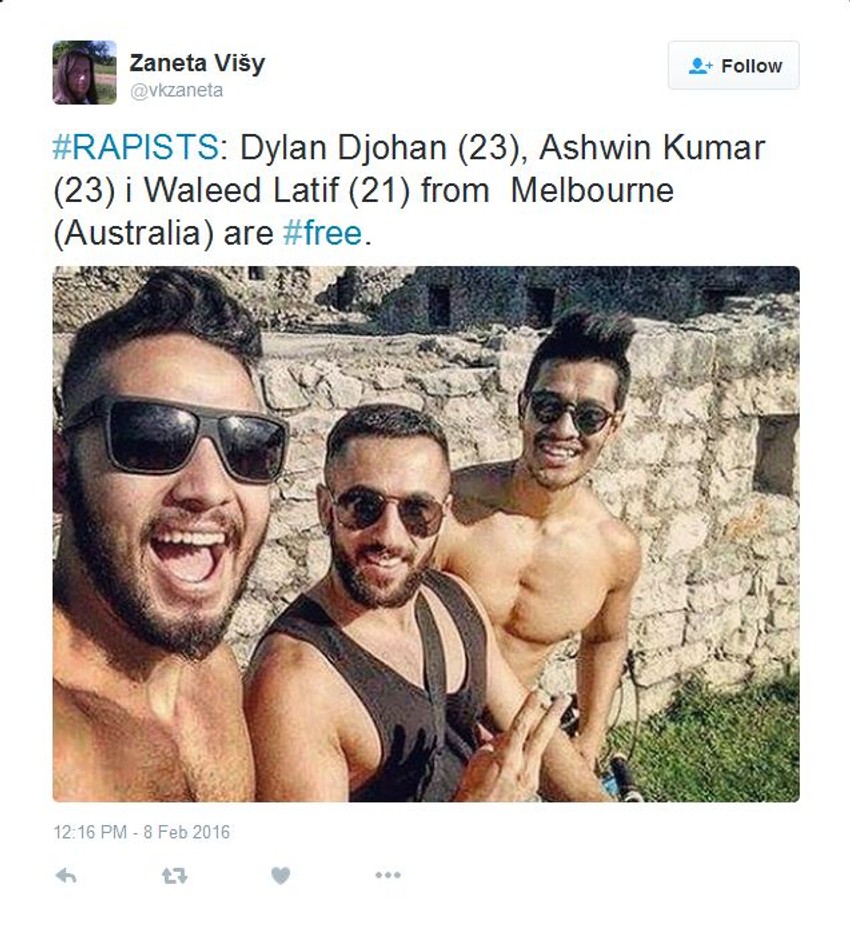 Odmah nakon silovanja, Norvežanka je iz kluba otišla pravo u policiju, sa kojom se ubrzo i vratila u klub, ali tamo Australijanaca više nije bilo. Ubrzo potom, policija ih je pronašla i uhapsila, neko vreme su proveli u pritvoru, a zatim su pušteni na slobodu, privremeno su im oduzete pasoši, pa su mesecima živeli u unajmljenom stanu u Splitu.