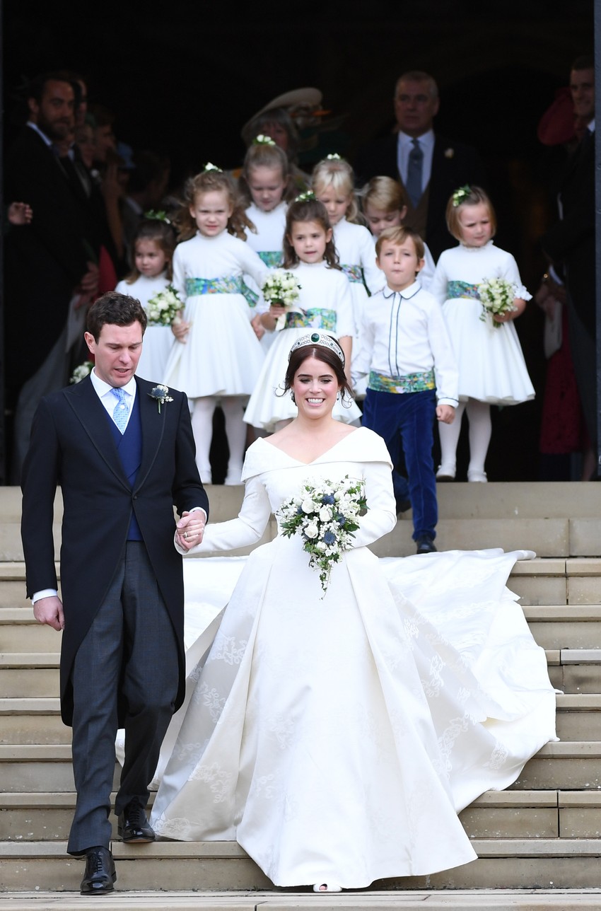 Venčanju su prisustvovali 92-ogodišnja kraljica i njen suprug Filip (97), princ Hari i njegova supruga Megan, koji su se venčali na istom mestu u maju ove godine, kao i holivudske zvezde Liv Tajler i Demi Mur, manekenke Kejt Mos i Naomi Kempel i pevačica Eli Golding.