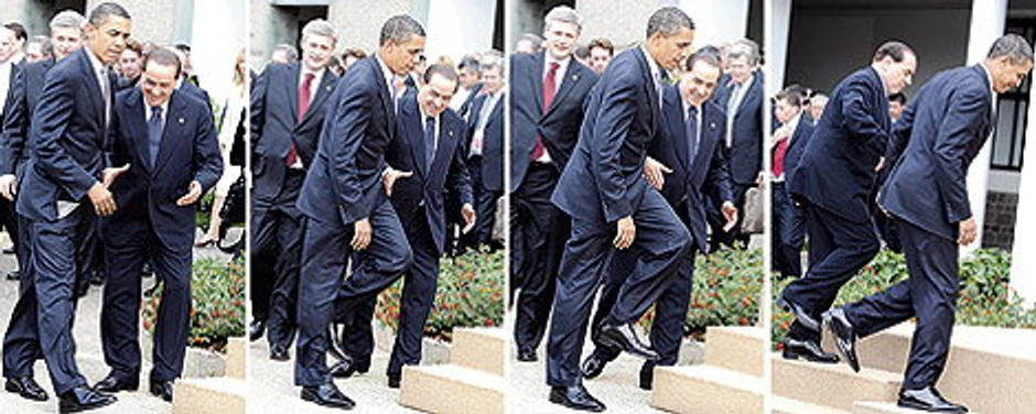Berluskoni je pružio ruku Obami, koji je dolazio na kolektivno fotografisanje prvog dana samita, a ona je ostala da visi u vazduhu jer je američki predsednik nije prihvatio nego je produžio dalje. Italijanski premijer nije dozvolio da mu ova mala neprijatnost pokvari dan, pa su dvojica lidera kasnije ipak viđena u srdačnom ćaskanju.