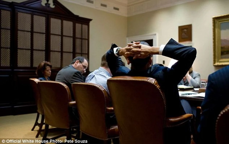 Na objavljenim fotografijama Obama je snimljen u društvu saradnika sa kojima raspravlja o pitanjima od državnog značaja.