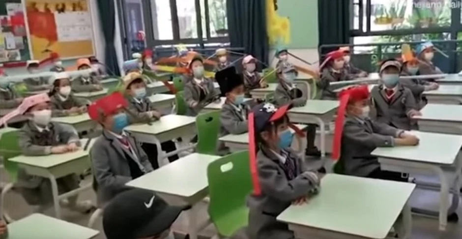 Ovo je predlog škole Jangdženg u Hangdžouu u provinciji Džeđang na istoku Kine. Na snimku koji je nastao u ovoj školi vide se deca sa ručno izrađenim kapama sa produženim krajevima na obe strane , piše “Dejli mejl”.