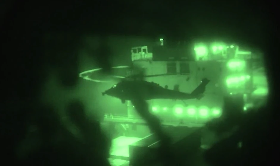 Centralna vojna komanda Sjedinjenih Američkih Država (CENTCOM) objavila je danas snimak na kojem se vidi kako američki marinci napuštaju amfibijski desantni brod USS Tripoli helikopterom i prelaze preko Arapskog mora kako bi se ukrcali i zaplenili iranski razarač Touska.