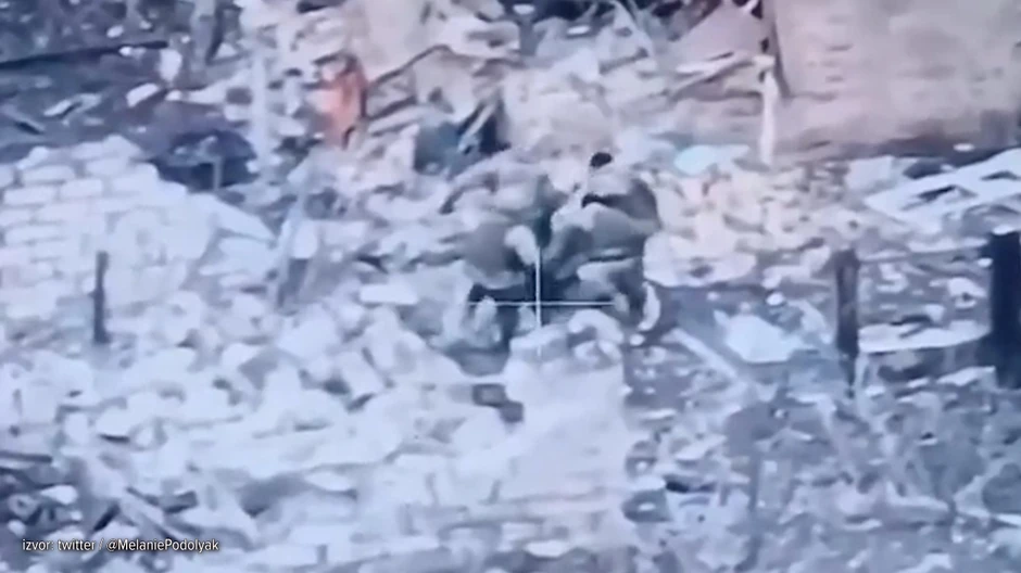 Ukrajinski dron snimio je incident u blizini istočnog grada Bahmuta, gde već mesecima besne intenzivne borbe.