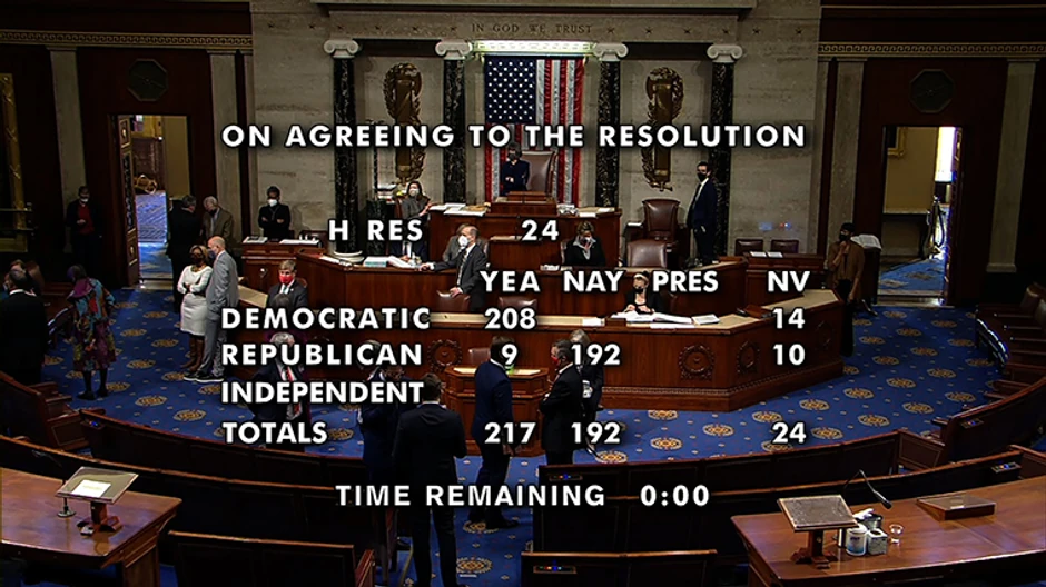 Predstavnički dom Kongresa SAD većinski je podržao rezoluciju o opozivu predsednika SAD Donalda Trampa, zbog podsticanja pobune u vezi sa nasilnim neredima na Kapitolu prošle nedelje.