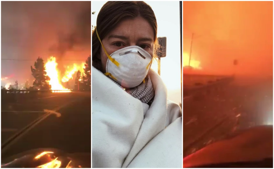 Na jednom od snimaka koje je objavila na Instagramu vidi se plamen visok i po dva metra kako guta drveće, čitavo brdo koje je u plemenu, dok ona vozi putem ka tunelu. Ulazak u mračan tunel pun dima, delovao je kao spas, ali nekoliko sekundi kasnije, na samom izlasku iz tunela postaje jasno da je borba tek čeka.