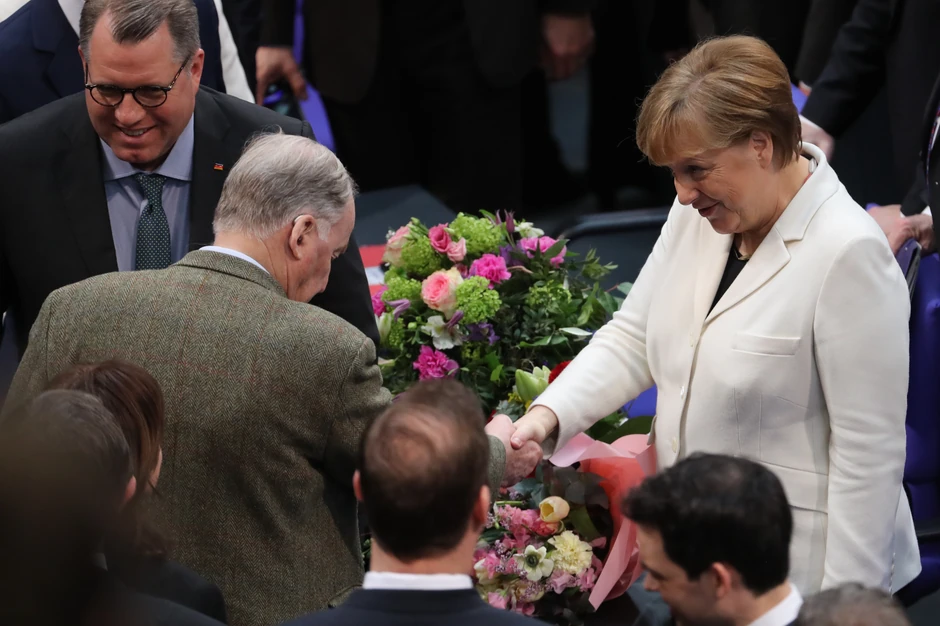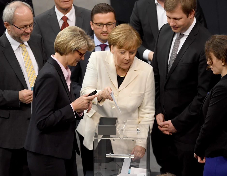 Kancelarka je u Nemačkoj neko vreme bila neprikosnovena. Bilo da je reč o sporu s koalicionim partnerom FDP-om, ili evrokrizi, kancelarka je opstajala, a napadi političkih protivnika nisu imali nikakvog efekta. Kritička pitanja novinara odgovarala je nejasnim, ali umirujućim izjavama. Svaka kritika se odbijala od nje. Na kraju drugog mandata, u izbornoj kampanji 2013, dovoljan je bio jednostavan apel biračima “Vi me poznajete” da bi pobedila konkurenta Pera Štajnbrika.