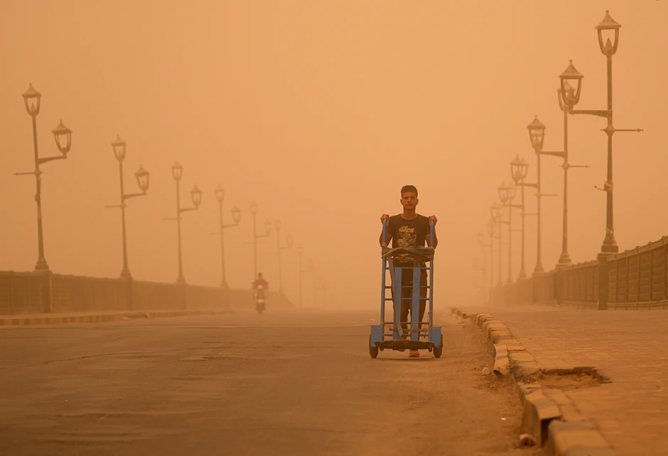 Od Rijada do Teherana, u ponedeljak je nebo bilo narandžasto zbog peščane oluje. Iračke vlasti su proglasile nacionalni dan, apelujući na državne činovnike i stanovnike da ostanu kod kuće, jer se predviđa da će deseti put oluja udariti na tu zemlju u prethodna dva meseca.
