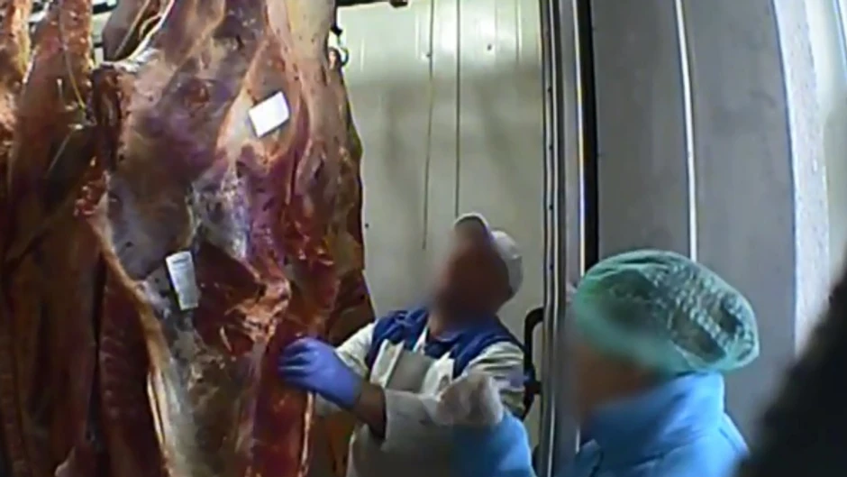 Na tajnim snimcima u klanici u centralnom poljskom regionu Mazovija vide se krave toliko bolesne da ih praktično iznose sa kamiona i vuku do mesare.