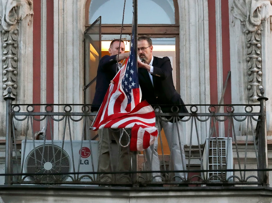 Prethodno, mediji su preneli da je su ruske diplomate i njihove porodice napuštale Ambasadu u Vašingtonu uz zvuke ruskog marša "Oproštaj od Slovenki", preko Atlantika njihove američke kolege spustile su zastavu SAD sa jarbola ispred konzulata u Sankt Peterburgu, spakovali stvari i takođe krenuli kući.