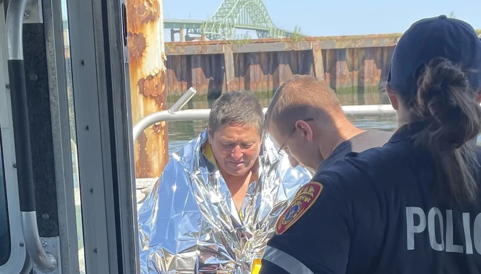 Dvojica muškaraca na motornom čamcu nešto kasnije su opazila Hoa i izvukla ga iz okeana, saopštila je policija u Safolku. Policajci su zatim prebacili Hoa na svoj brod gde su ga odmah lečili od hipotermije.