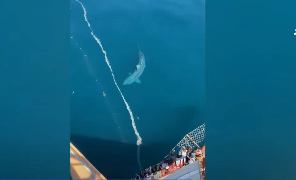 Iskolačenih očiju i otvorenih usta turisti na brodu u Atlantskom okeanu gledali su u džinovsku ajkulu koja je kružila oko njihovog broda.
