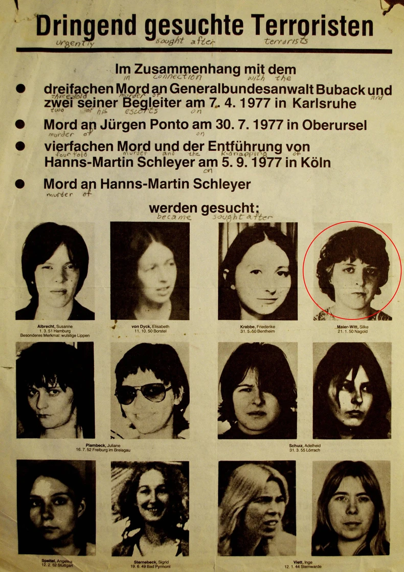 Ona je 1977. godine bila umešana u kidnapovanje i likvidaciju nemačkog industrijalca Hansa Martina Šlejera. Tada su ubijeni njegov vozač i trojica policajaca koji su ih štitili.