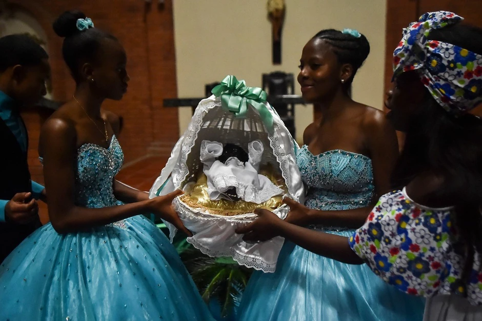 Stanovnici kolumbijskog sela Kvinamajo slave Božić 18. februara sa procesijom koja sadrži crnu figure bebe Isusa. Seljani kažu da tradicija potiče još iz doba robovlasništva, kad je njihovim precima bilo zabranjeno da obeležavaju Božić 24. decembra.