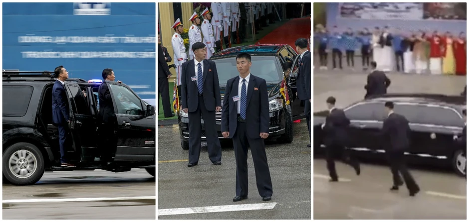 Naime, oni su snimani kako uvežbano trče oko limuzine u kojoj se nalazio Kim dok se vozio od svog hotela do mesta gde se sastajao sa Trampom i vijetnamskim zvaničnicima.