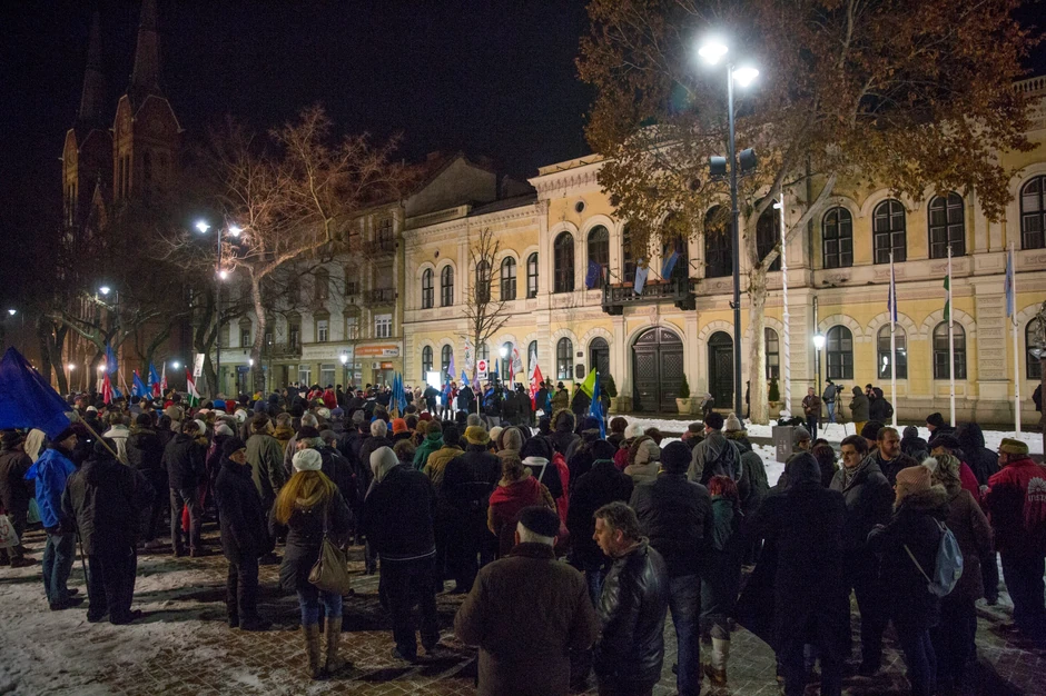 Dok je premijer govorio, njegovi protivnici su se okupili u Budimpešti. Bio je to najnoviji u nizu mitinga protiv vlade koji su počeli u decembru, nakon što je parlament usvojio "ropski zakon", koji omogućava poslodavcima da od radnika traže deodatne prekovremene radne sate.
