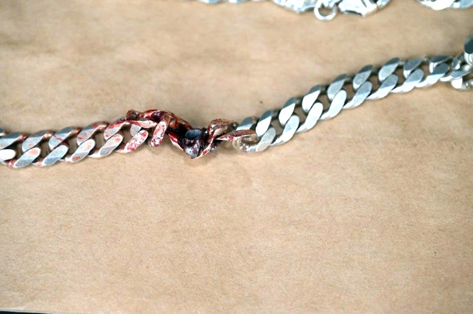 Metak kalibra 0,22 bi završio u vratu žrtve da se umesto toga nije zaglavio u ogrlici, saopštila je policija. Njegov lanac širok 10 milimetara bio je u stanju da priguši silu metka i spreči da izazove dalju štetu.