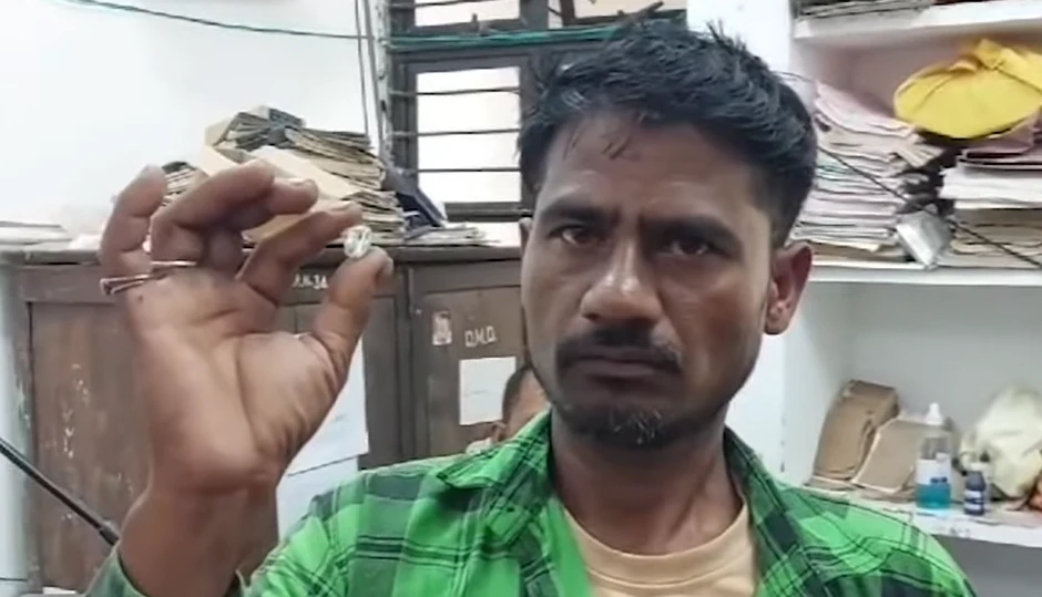 Presrećni Raju Gound kaže da je kopao u rudniku u gradu Pana više od 10 godina u nadi da će pronaći dijamant. Pana je poznata po dijamantima, a vlada vrlo jeftino iznajmljuje plitke rudnike ljudima kako bi tamo mogli da traže drago kamenje.