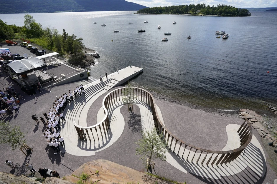 Ceremoniji koja je obavljena skoro 11 godina nakon smrtonsonog napada prisustvovali su preživeli, porodice žrtava, premijer Jonas Gar Store i princ Hakon.
