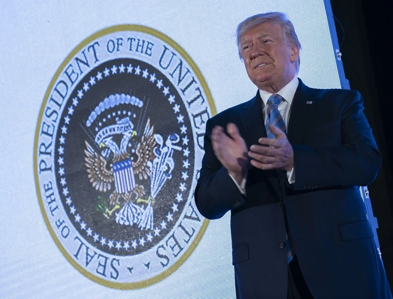 Član konzervativne američke grupe dobio je otkaz nakon što je na studentskom samitu, na kojem se obratio američki predsednik Donald Tramp, emitovao preko projektora izmenjenu verziju predsedničkog pečata, na kojem se umesto jednoglavog, nalazi dvoglavi orao, sličan onom na ruskoj zastavi.