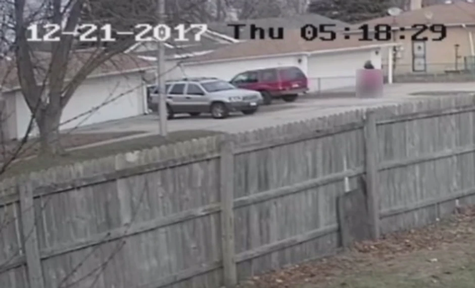 Na snimku se vidi kako čovek, identifikovan kao Brajan Proto, stoji pored crvenog terenskog vozila u uličici, dok devojčica – koja je zamagljena na snimku a njen identitet i godine nisu otkriveni – prolazi pored njega.