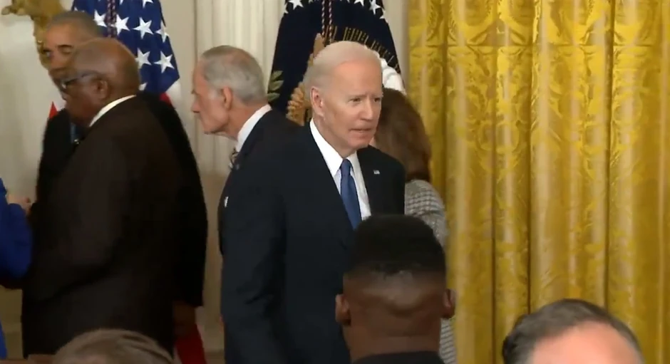 Bajden (79) snimljen je u utorak kako diže ruke u blagom ogorčenju, pošto ga je osoblje Bele kuće ignorisalo i otrčalo da pozdravi Obamu (60).