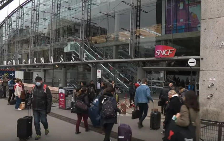 Na pariskoj železničkoj stanici Gar di nor putnici, od kojih mnogi nose maske, okupljaju se na odlaznim peronima.