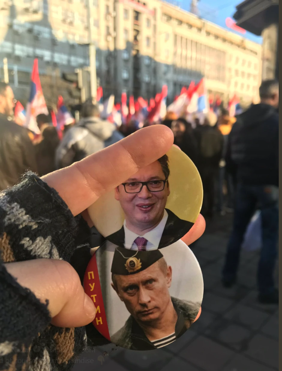 - I naravno, uspomene - glasio je opis druge fotografije na kojoj su se nalazili bedževi sa likovima predsednika Srbije i Rusije.